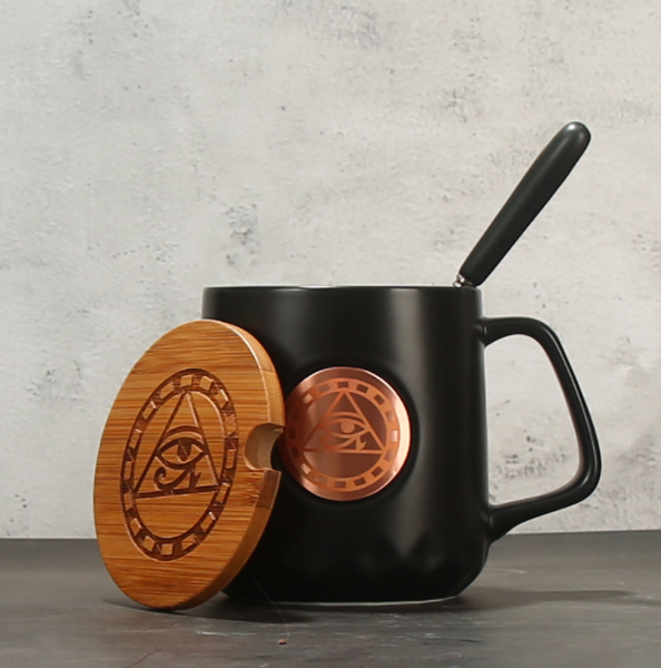 歐式小清新水墨風創意陶瓷馬克杯子帶蓋勺情侶咖啡杯簡約字母禮品